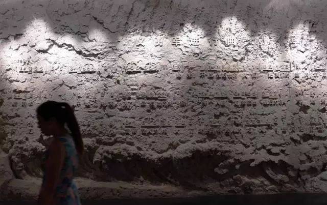 参观者经过沈阳九一八历史博物馆内的《义勇军进行曲》浮雕墙(新华社发)