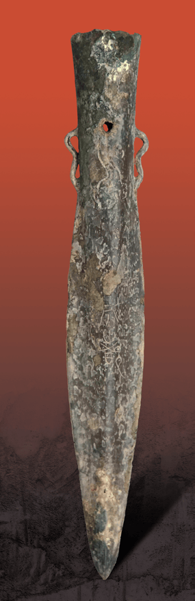 蒲江出土的青铜矛上刻篆体“成都”二字,这是考古发现中“成都”二字在成都地区首次发现,将成都城市名称出现提前了200多年(图源:蒲江县史志办)