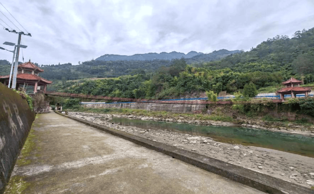 2013年芦山“4·20”地震后灾后重建,玉溪村到宝盛场隧道穿山,在原公路桥的上面又建一水泥桥通隧道口。