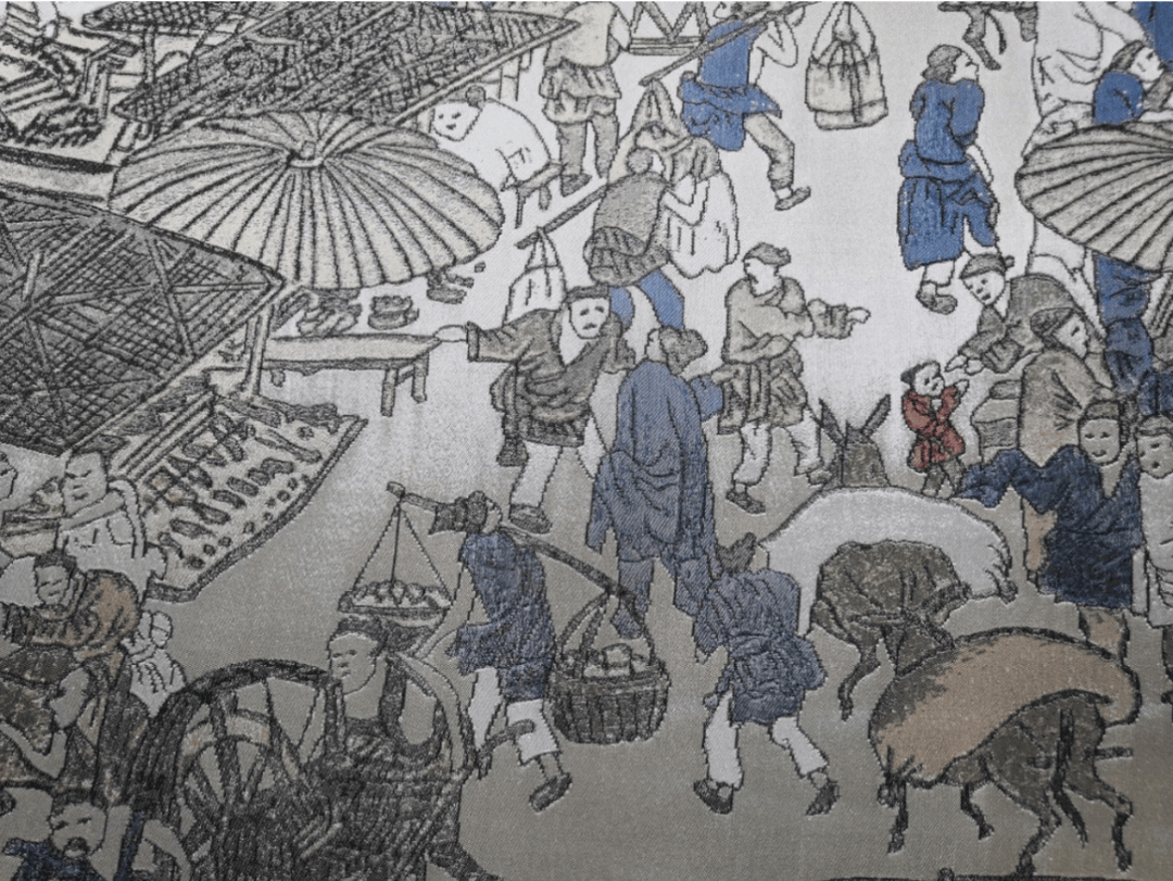 《天下第一蜀锦》局部图,展现了蜀锦通过南方丝绸之路外销之景(图源:四川丝绸博物馆 )
