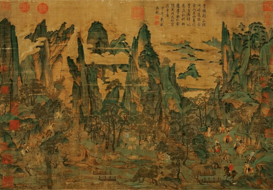 《明皇幸蜀图》,相传为唐代山水画家李思训所作,连贯地表现了蜀道行旅之难,现藏台北故宫博物院(图源:成都市金牛区地方志办公室)