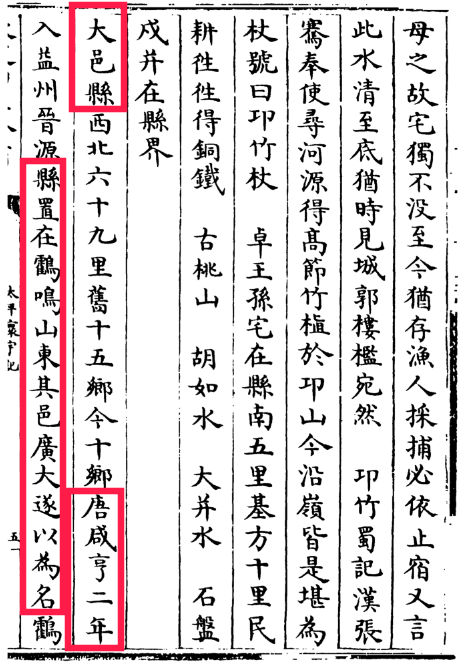 《太平寰宇记》记载大邑得名原因 (图源:大邑县档案馆)