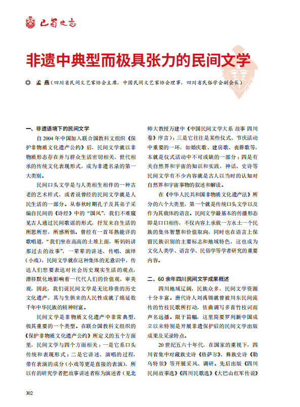 作者:孟 燕(四川省民间文艺家协会主席,中国民间文艺家协会理事,四川省民俗学会副会长)