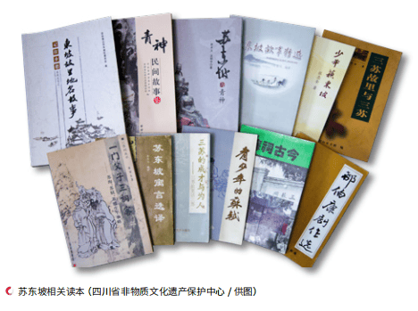 四川地域辽阔,民族众多,民间文学资源十分丰富。唐代诗人刘禹锡就曾被川东民间流传的竹枝民歌所打动,依曲调写多首竹枝词而声名远播。限于篇幅,这里简要罗列新中国成立以来特别是开展非遗保护后的民间文学出版成果及采录特点。20世纪五六十年代,在国家的重视下,四川省集中对藏族史诗《格萨尔》、彝族史诗《勒乌特依》等开展采风、调研。先后出版《四川民间故事选》《四川民歌选》《大巴山红军传说》苏东坡相关读本(四川省非物质文化遗产保护中心/供图)《大凉山彝族故事选》《杜鹃与李贵阳》《青蛙骑手》等民间文学作品集。