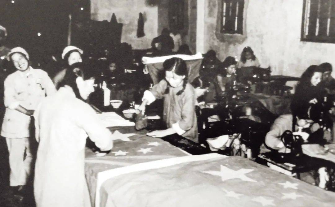 1949年,缝纫女工正在精心制作国旗。