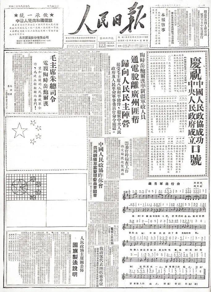1949年9月29日,《人民日报》刊登的《国旗制法说明》(中央档案馆藏)