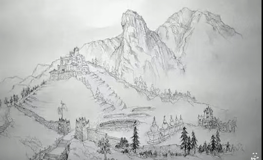 卢明远绘制的东女国王城遗址图初稿(图源:“微阿坝”微信公众号)