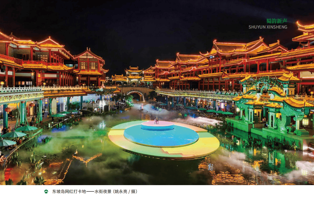 培育文化消费场景。培育文化消费新场景对推动城市转变发展方式、促进消费提质升级,更好满足人民高品质生活具有重要意义,是城市发展有灵魂、有内涵、有吸引力和竞争力的重要体现。近年来,眉山鼓励各县(区)立足优秀传统文化资源,推动现有产业业态升级,积极打造新型文化消费场景。举办东坡文化季、2023“寻美乡村·乐游眉山”乡村旅游季等文旅节会活动147个、子活动450余个。统筹实施东坡文化业态培育行动,打造东坡美食、文创演艺、夜间经济等文旅消费新场景。“东坡醉月地”创成国家级夜间文化和旅游消费集聚区,并入选国内旅游宣传推广优秀案例,东坡区成功入选省级文化产业和旅游产业融合发展示范区创建名单。东坡水街、竹里萤光等成为现象级网红打卡地。三苏祠成为全国现象级热门人文旅游胜地,2023年游客超158万人次、接待量翻番。这些场景都擦亮了眉山城市文化名片,推动三苏文化影响力显著提升。