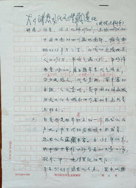1991年首次申报时的《大山铺恐龙化石遗址》脚本(曾上游、欧阳辉)