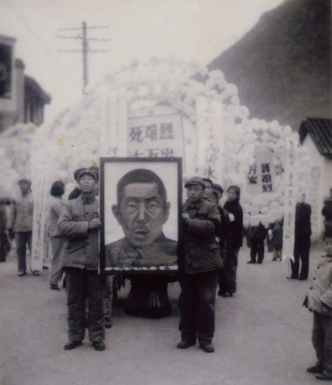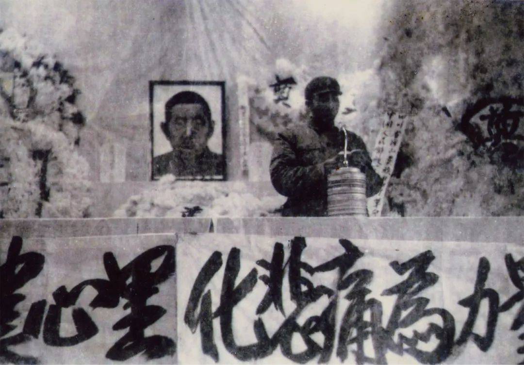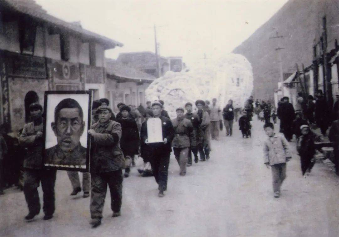 1969年11月29日,金阳县各族人民为王凤仪送行,抬遗像者右为革命委员会主任李金柱,左为县人武部政委张志英。