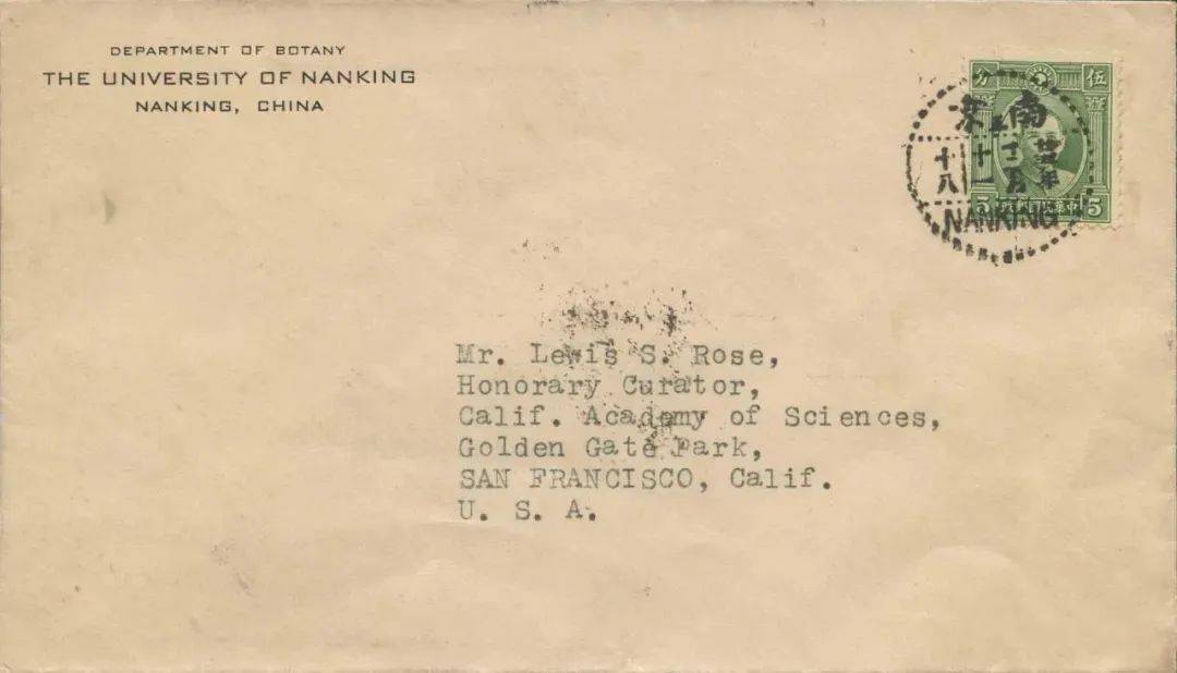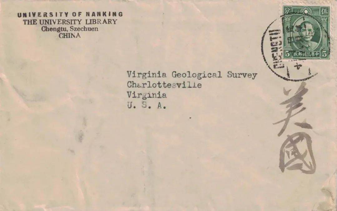 左图:金陵大学图书馆公函封,1936年12月11日南京寄美国。右图:金陵大学图书馆公函封,地址四川成都,1939年4月18日成都寄美国。