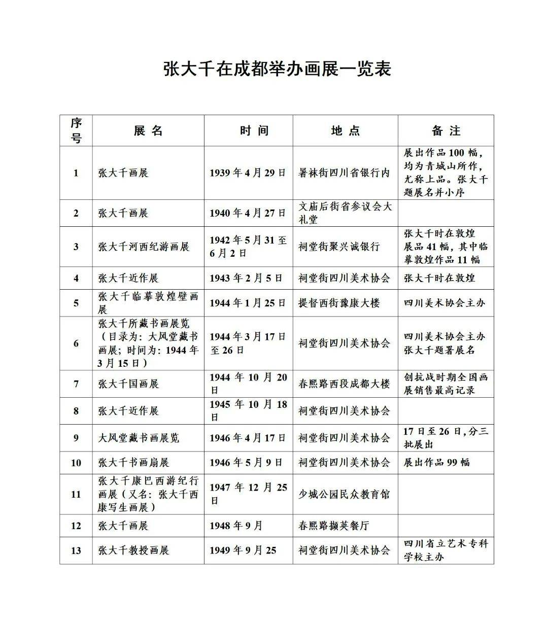 附: 张大千在成都举办画展一览表