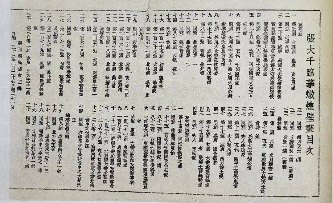 1944年1月,张大千临摹敦煌壁画(展览)目次。