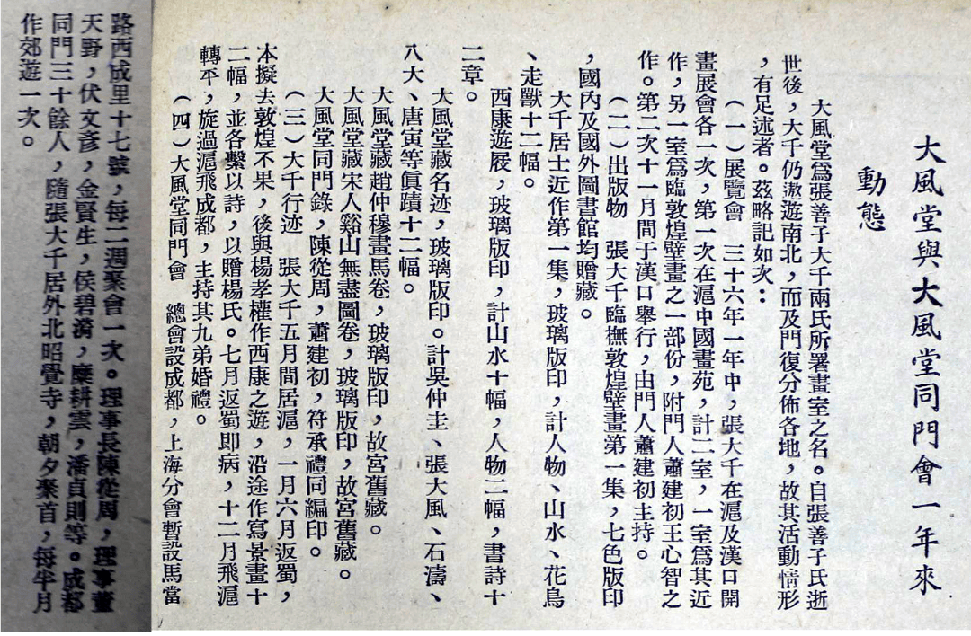 《大风堂与大风堂同门会一年来的动态》(载上海《中国美术年鉴》,1948)