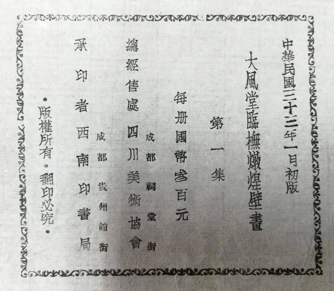 1944年1月,四川美术协会总经售的《大风堂临橅敦煌壁画(第一集)》