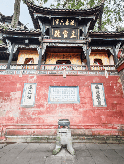 三官殿墙壁正中嵌刻有成都知府文焕在清光绪三十二年(1906年)刊刻的治水《三字经》,两旁是治水八字格言(曾那迦 摄)