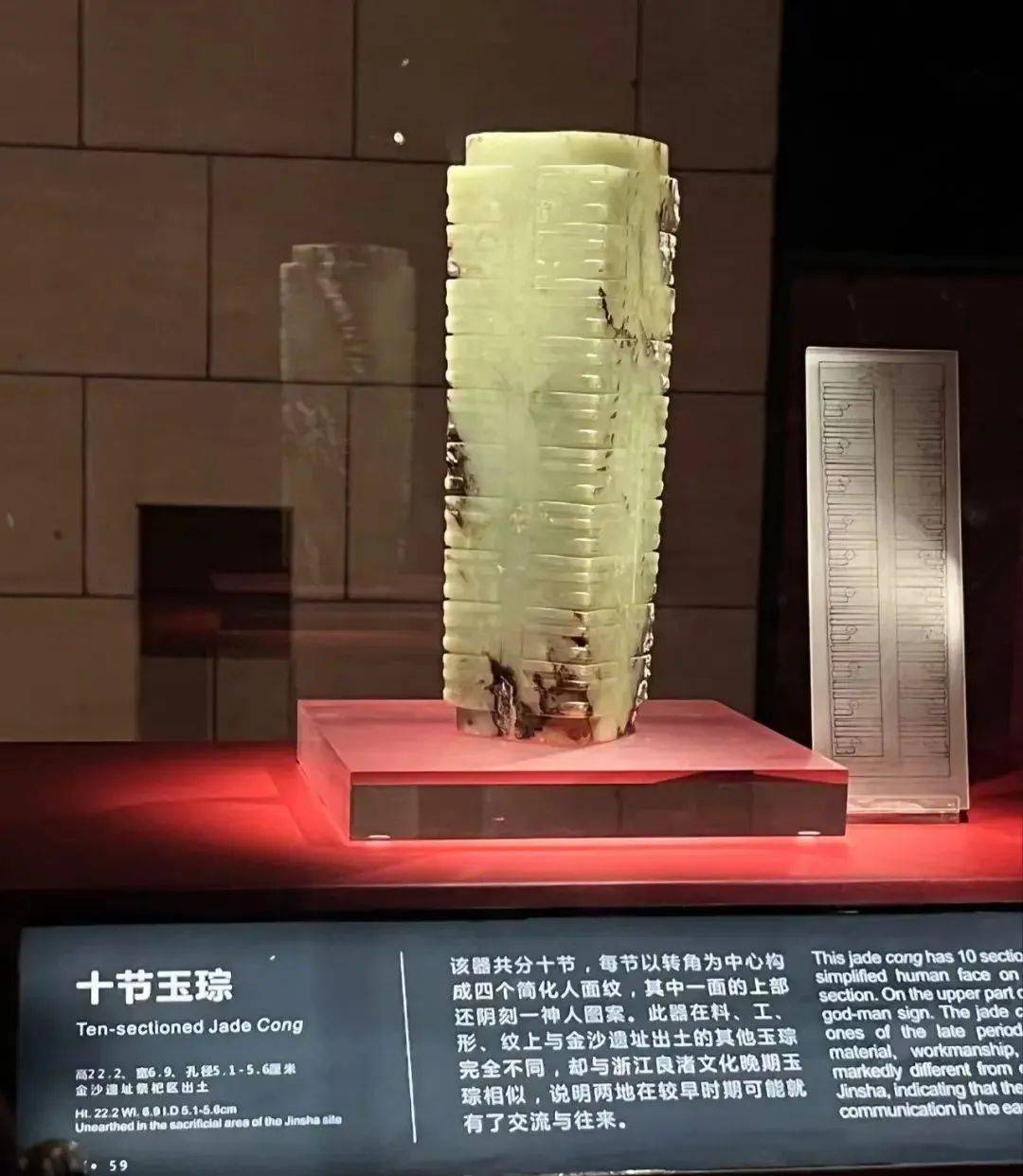 成都金沙遗址博物馆馆藏十节玉琮,与浙江良渚文化晚期玉琮相似(记者 董洁 摄)