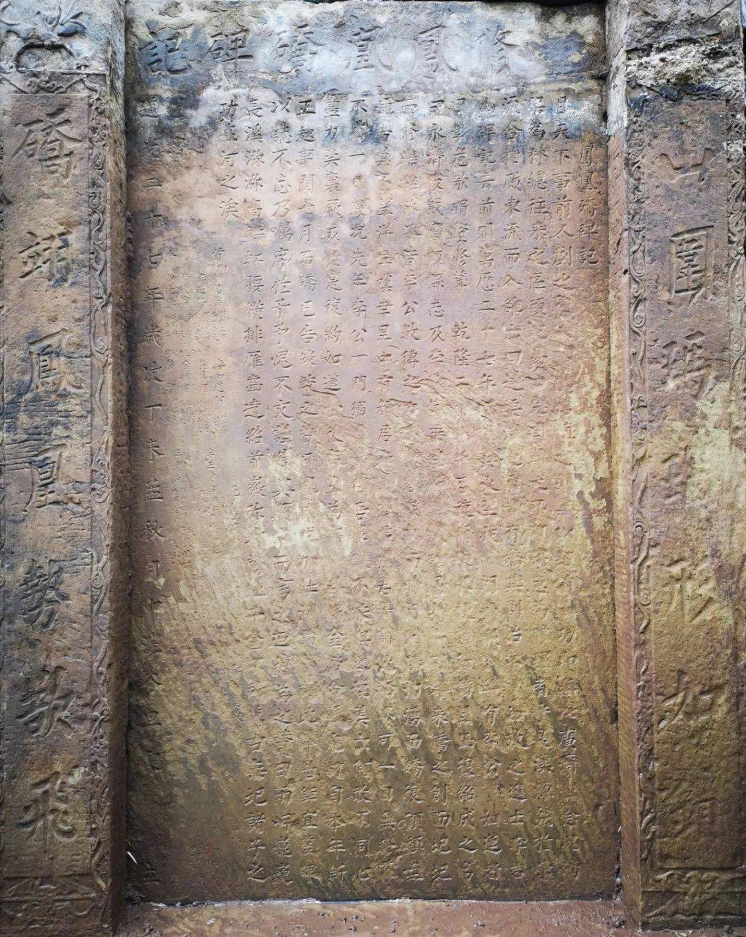 2020年4月自贡双河口—凤凰坝综合治理示范项目施工现场发现一块名为“重修凤凰桥碑记”石碑。该石碑建于清道光二十七年(1847),碑体高2.6米,底座宽2.4米,碑文记录自贡明代井盐陆路外运的北起点——凤凰桥的由来,以及该次重修时由大盐商颜昌英发起募捐,李振亨等盐商和富人参与捐款等事件。
