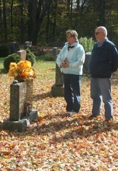 帕特与丈夫在母亲的墓前