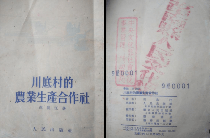 1952年人民出版社出版的《川底村的农业生产合作社》(山西省长治市平顺县三里湾村党支部书记李桂芳 供图)