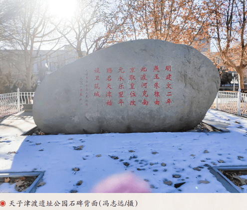 以上3处证据,均出自天津旧志的艺文部分,是与诗歌等题材放在一起记录在案的,并不作为信史。3份记文均为距离永乐一朝时间较远的文臣在具体工作中提及天津时所描述,有邀功之嫌。李东阳写道:“我朝太宗文皇帝兵下沧州,始立兹卫,筑城浚池,立为今名,则象车驾所渡处也。”朱棣经过沧州是在1400年,天津设卫是在1404年,时间不相符。《重修天津三官庙记》记载永乐“我朝成祖文皇帝入靖内难”,此时永乐的职务是已被皇帝下诏削蕃的“假”燕王,不存在后文“圣驾”的问题,职务不相符。天子渡河之处叫天津,从北京到南京要过大运河、黄河、淮河、长江等多处河流,渡河之津都是天子津渡,为何只称直沽为天津。在朱棣靖难过程中,第一仗是争夺北京的控制权,最险的一仗是打济南渡黄河的战役,渡过运河只是一次正常的军事行动,意义不相符。作为犯上作乱的“假”蕃王,不会为一次没有太大意义的渡河而赐名,为自己增加一个僭越的罪名。《明史》中有多处皇帝为山川河流等赐名的记载,但《明实录》《明史》中均无记载永乐赐名天津,其说有待商榷。