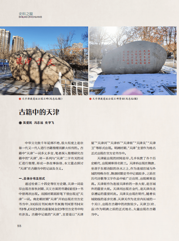 中华文化数千年延绵不绝,很大程度上是依靠一代又一代人进行古籍整理而薪火相传的。古籍中“天津”一词多义多变,笔者深入整理研究古籍中的“天津”,将一系列与“天津”二字有关的词汇进行整理,形成一条故事脉络,本文重点探讨“天津”在古籍当中的记录及含义。