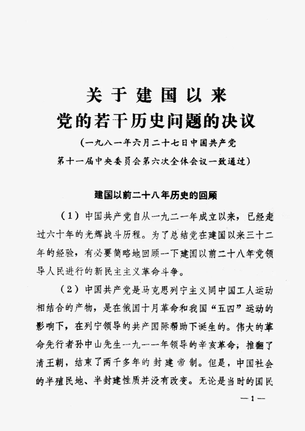 党的十一届六中全会上通过的《关于建国以来党的若干历史问题的决议》