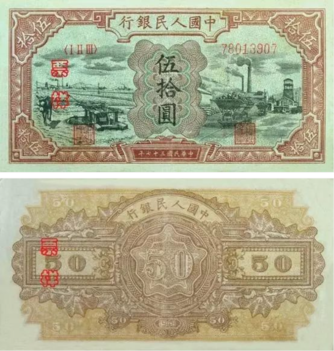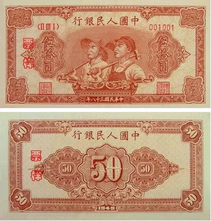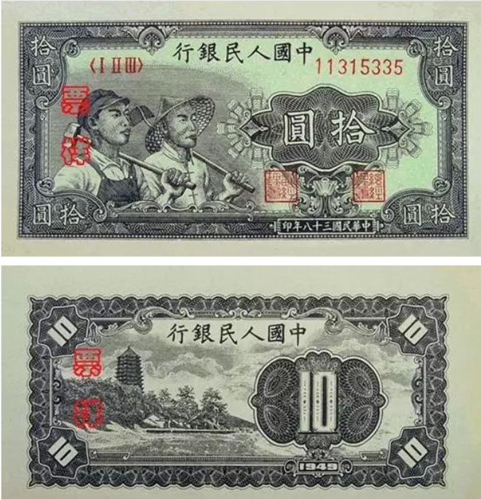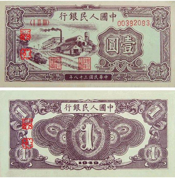第一套人民币1948年12月1日至1953年12月陆续发行。只有纸币,没有硬币,共有12种面值,62种版别。