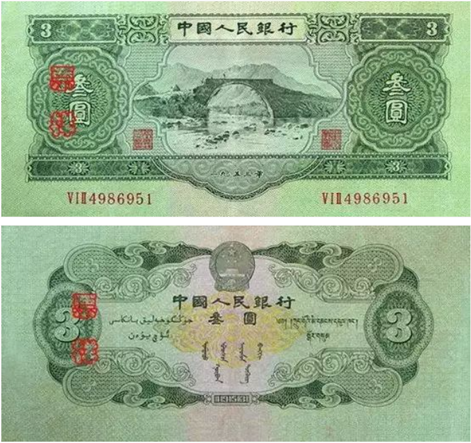 第三套人民币1962年4月20日至1974年1月5日陆续发行。纸币共有7种面值,9种版别;硬币4种面值,4种图案,4种版别。
