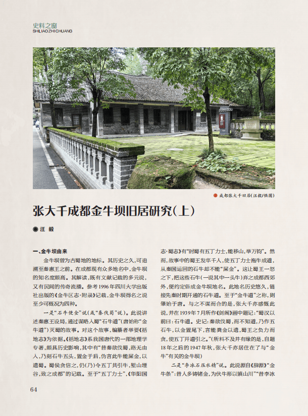 【历史文化】张大千成都金牛坝旧居研究(上)||汪 毅