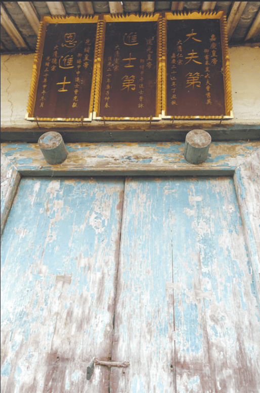 据现场留下的建筑遗迹看,祠堂原始规模不小,与之前见过的客家祠堂传统建筑构架一致,分为三进和侧房,第一进的建筑已荡然无存,取而代之的是一圈水泥围墙,上铸铁门;打开铁门走进去,就可看到曾氏祠堂的第二进建筑,粗大的横梁和柱子,无不述说着历史的久远。这就是祠堂的正堂。正堂门上,赫然挂着清朝三代皇帝赐给曾氏家族的匾额,分别是“大清仁宗嘉庆皇帝御书奉直大夫曾秀英大夫第”牌匾、“大清宣宗道光皇帝御赠甲午进士曾詠进士第”牌匾,以及“大清德宗光绪皇帝赐甲申进士曾光毅恩进士”牌匾。进入祠堂,供奉的是曾氏祖先的画像和牌位。祠堂后面,是第三进的建筑,但仅剩基石了。花纹斑驳的条石已经历经数百年风霜。据民国版《华阳县志》记载,鉴于曾氏一门对朝廷的贡献,道光皇帝曾专门拨付国家库银修建维护曾氏祠堂。