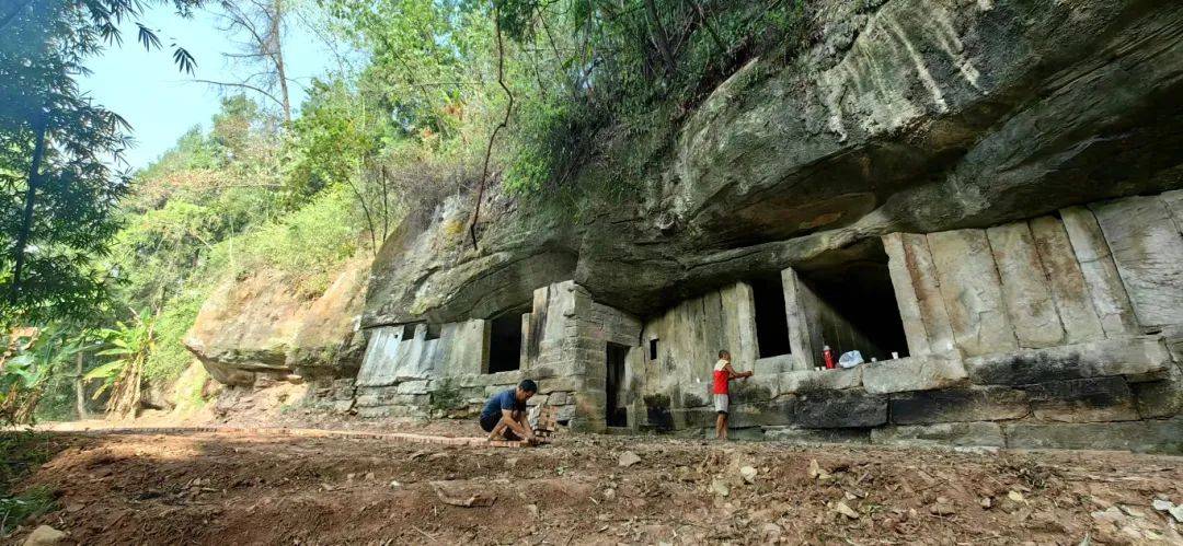 老先生看中的岩腔就像鲶鱼的大嘴巴,位于下路湾(后改名夏乐湾)撮箕形山沟沟底部半山腰,前面两侧是丘山,两山下面是沟田,沟外有西河支流流过。夏天东南风从沟口吹进来,给石室带来清凉;冬天西北风被后山所挡,石室不至于北风扫堂。石室建成后,屋前种下竹树,四季绿意盎然。