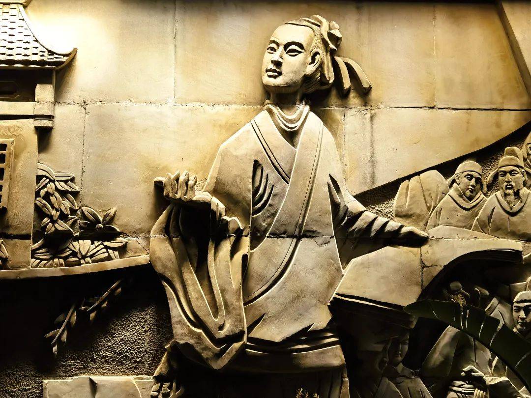 文化墙上少年时代的子昂浮雕