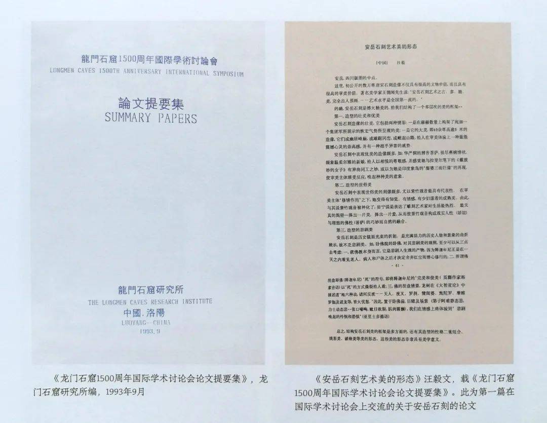 《安岳石刻艺术美的形态》汪毅文,1993年9月,载龙门石窟1500周年国际学术研讨会《论文提要集》。为第一次把安岳石刻推向国际学术论坛。