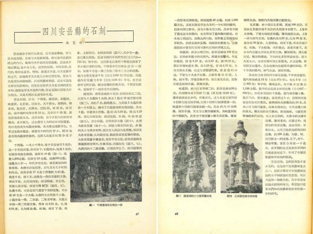 《四川安岳县的石刻》吴觉非文,载《文物参考资料》,1956年第5期。为第一篇介绍安岳石刻的专文。