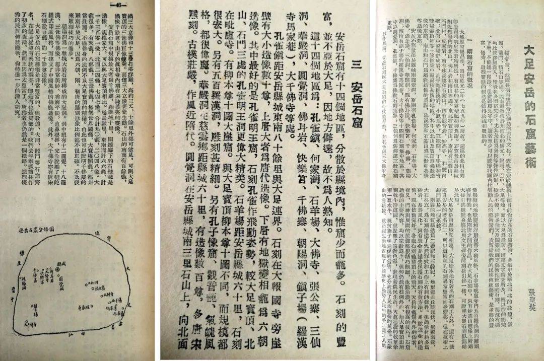 《大足安岳的石窟艺术》张圣奘文,载《西南文艺》1953年7月号。此文率先介绍安岳石刻,并首次对安岳、大足石刻进行比较。