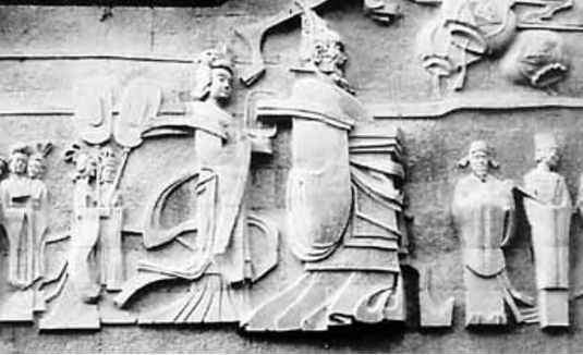 在成都文化公园支矶山上,有一面总长134米,平均高度8米的《灯会溯源图》浮雕墙。整座浮雕墙分三部分:唐代、宋代、明清时代。其中,宋代部分,主要展示了宋商贾集市因照明辅以灯,促使各式彩灯不断出现,如方灯、圆灯、具有动感的鱼灯、兔灯等以及灯会盛况情景。