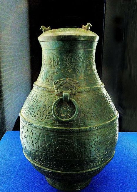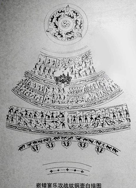 春秋战国时期,由于生产力的发展和军事上的需要,促使各国加强了水军的扩大和训练。成都百花潭中学战国墓中出土的“嵌错宴乐渔猎攻战纹铜壶”上,第三层纹饰就刻画了“水陆攻战”的场面。