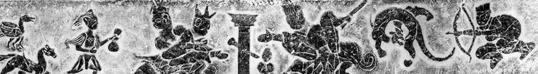当然,游泳在我国古代不仅用于生活、军事中,还作为一种娱乐活动。1972年郫县竹瓦铺汉墓中出土了一具石棺,其上刻有一幅“水戏图”。图中,左为莲池,小舟上立一鹤,有二人摇桨,一人展力叉鱼,池内有鹤、鱼、蟾蜍、莲等;中部左起第一人执伞站立,身前五人,中者高冠长服,手捧乐器站立,旁四人捧盾躬身作迎候状,右侧树二旗,旗间四人并列,四肢着地,背朝上似作比赛状;身后一人执建鼓,上有华盖,身体微微向前,举手欲击建鼓为其助兴。