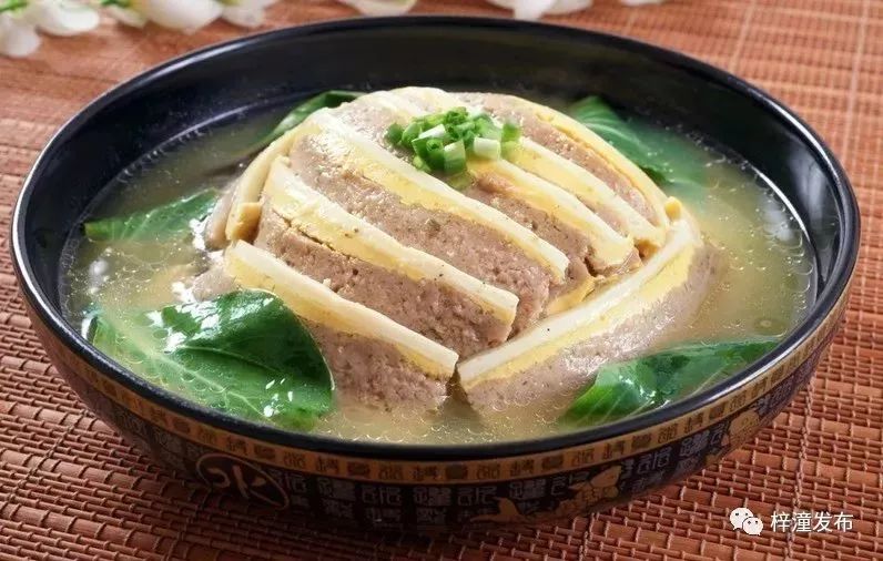 镶碗以鸡蛋、淀粉、豆腐、精肉和羹料木耳、黄花、时令蔬菜等制成,蛋清、蛋黄、肉末分层搭配,置于大碗,黄白可爱,色、香、味兼具,营养可口,有淡雅风韵而无骄娇之气,可谓“田席”大菜。据梓潼学者考证,镶碗产生于驿道“接官”传统。这道菜纯用普通菜品,做出了适宜外来游宦者的口味,丰富了川菜品类,体现了梓潼地方文化的包容性。