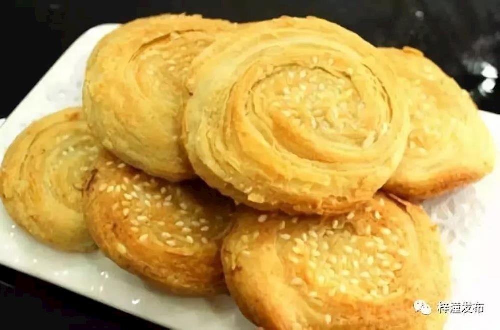 酥饼以面粉、化猪油、菜油、砂糖、芝麻为主要原料。头道面粉做发酵面,与干面混和拌匀,不再发酵;二道面与花生油和面,加入糖或食盐、花椒粉揉制成饼胚,烘烤至发脆。烤后加压、冷却、摊开、搌平,即为成品。饼色黄亮,酥脆化渣且耐久贮,以制作精细,风味独特而驰名。