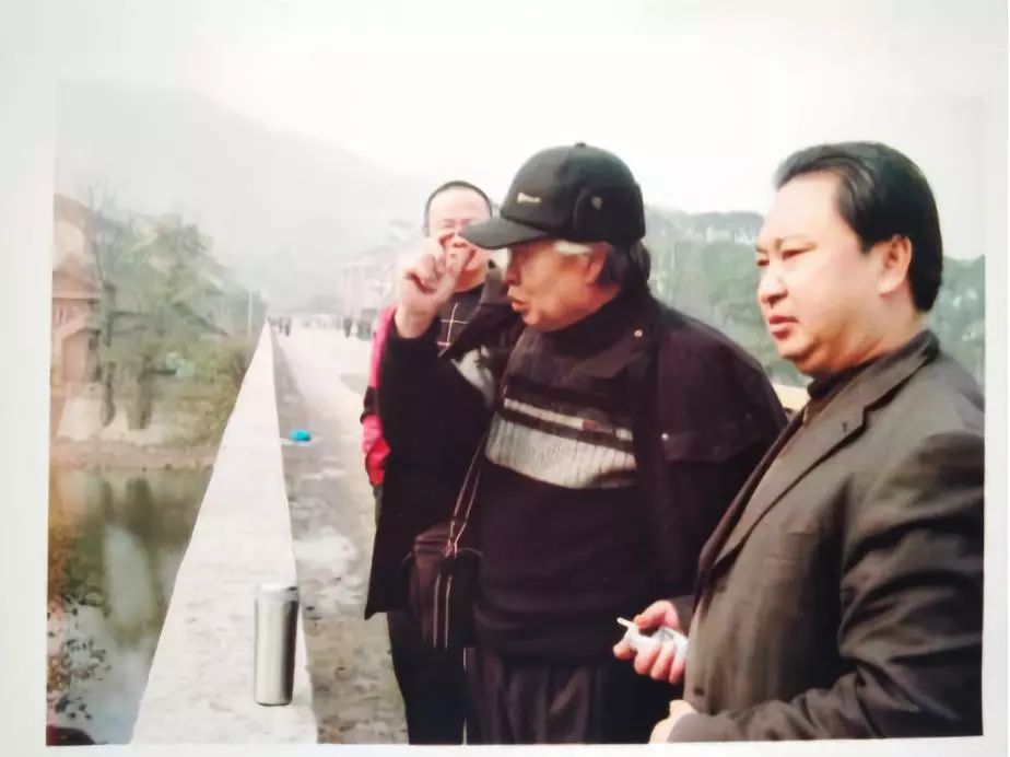 2006年1月,车述君、王云贵、赵平陪同季富政教授(中)考察柳江(王云贵 摄)