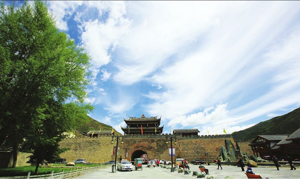松潘,古名松州。城内,一条湍急清澈的河流从东端穿过环城路向西流去,再经中央大街转往南边,最后从南城门左侧流出古城。河水叮咚,清韵悠然,映照着城楼和花草的倒影,使得整个松州城活泼生动起来。沿街的酒楼、茶肆、烟馆、旅店、杂货铺一家紧挨一家,吸引了大批游客驻足。汉藏居民安静地摆摊、闲聊。