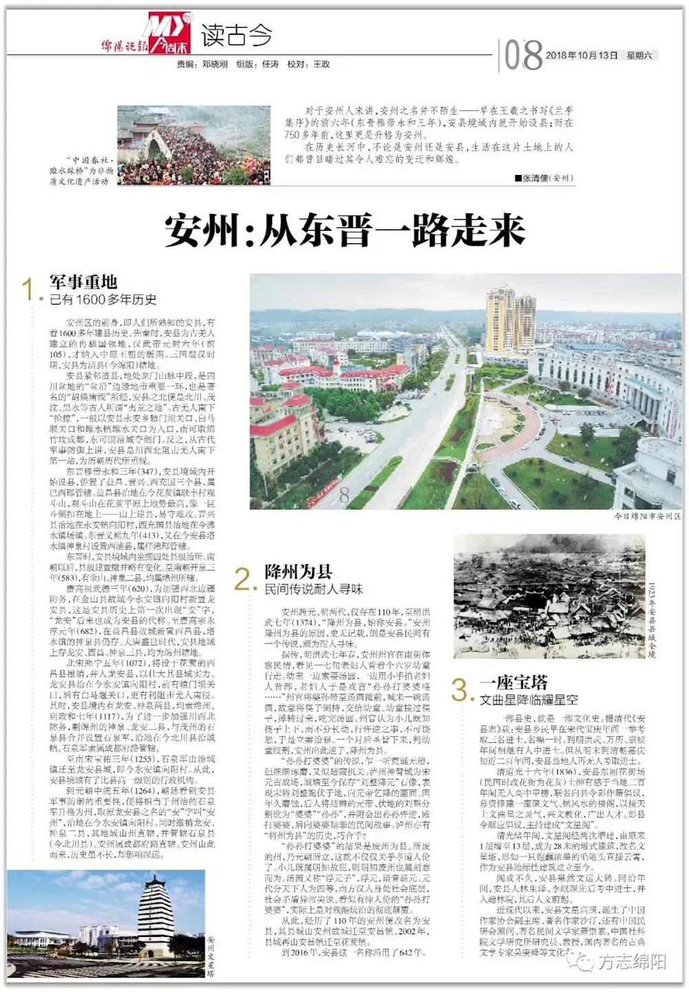 本文为《绵阳晚报》“读古今”专稿,原载2018年10月13日第8版,作者:绵阳市安州区地方志办公室 张清儒