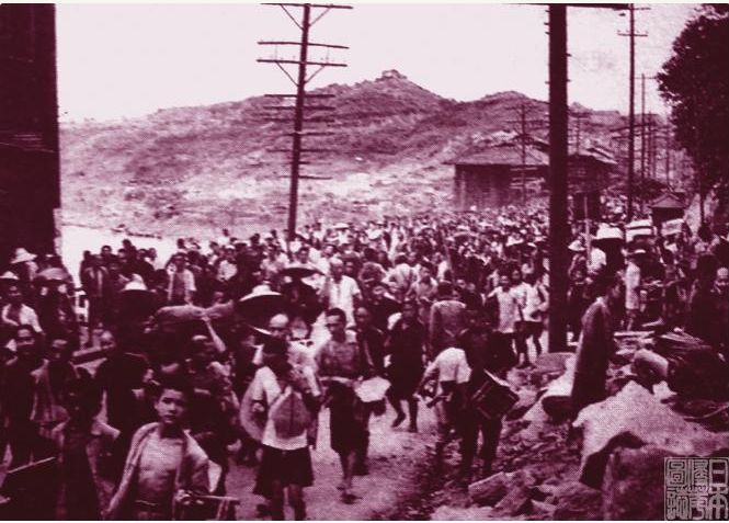 图为抗战时期成都百姓潮水般扶老携幼 “跑警报”(图片来自《日本侵华图志》第十四卷《无差别轰炸》)