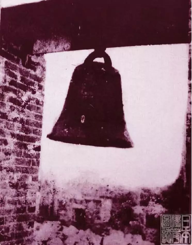 图为抗战时期成都挂在屋檐横梁上的警钟(图片来自《日本侵华图志》第十四卷《无差别轰炸》)