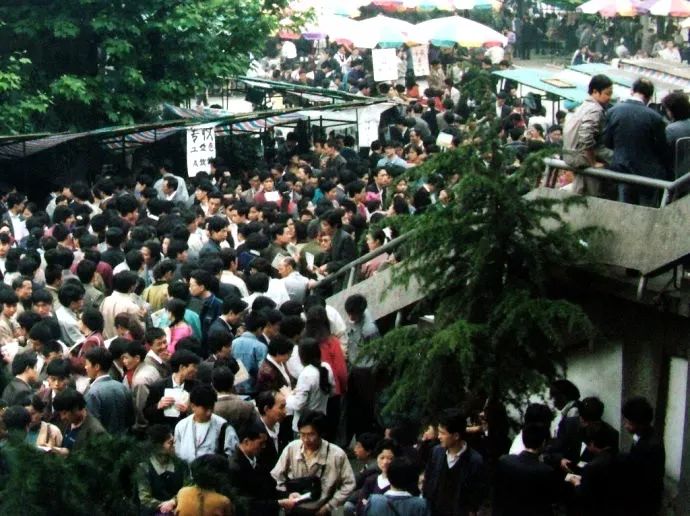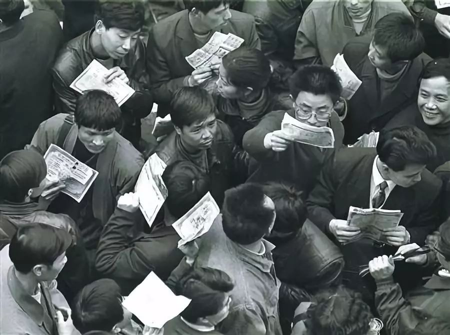 从1992年底开始,成都红庙子形成自发证券交易市场。每天有数万人参与股票、股权证、债券交易,闻名全国(图片来源:华西都市报)