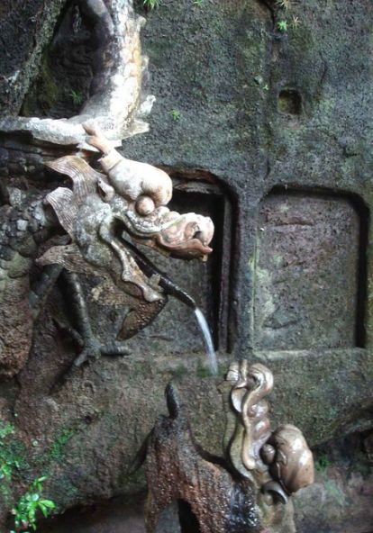中岩是佛教圣地,自唐宋以来,众多摩崖造像,题刻达2400多处。在中岩寺有一个巨崖凸现的丹霞石壁,高达十丈余。石壁上有泉水喷涌而出,有巨龙吞吐迎接。这个中岩半山的清幽之地,黄庭坚品尝到中岩山僧手工制作的茶叶,那种不柔嫩也不苍老的中叶,有点苍黄但还枝健叶茂的当地土茶,正合黄庭坚的口味。史载他在这里“品茗三月,乐而忘返!”这期间,黄庭坚在中岩巨崖覆盖的山阴道旁,引泉水入池,依山势造了一个流杯池,径达2米,中间取太极图形,以红石砌成旋转式龙骨,以水为阴,水绕龙骨而曲水流杯。池成,黄庭坚邀请众文友在此置酒杯于池中,众人围在四周吟诗观景,诗句一落声,则视酒杯停留处,对应之人就要饮酒,并现场作诗,酒杯继续流动下去,这样的游趣常常持续一天,诗词作品也被“逼”出来。当然,最精彩的还是黄庭坚的《玉泉铭》: