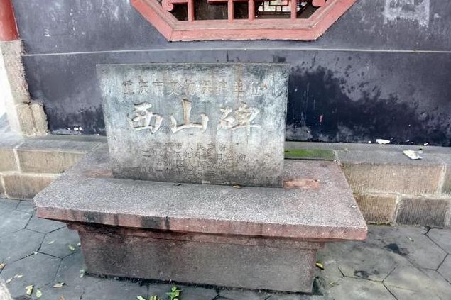 据史书记载:建中靖国元年(1101),黄庭坚顺江东归,道经南浦(现万州),应郡守高仲本之邀,到西山游览。当时诗人见西山山麓(现万州高笋塘一带)鲁池浩瀚、竹柏丰茂、亭榭环绕、僧舍点缀,即兴写成《西山题记》刻于碑上。清朝咸丰七年(公元1857年),万县知县冯卓怀,将“西山碑”拓本送给他的老师曾国藩,曾国藩称道:“海内存世,黄书第一”。