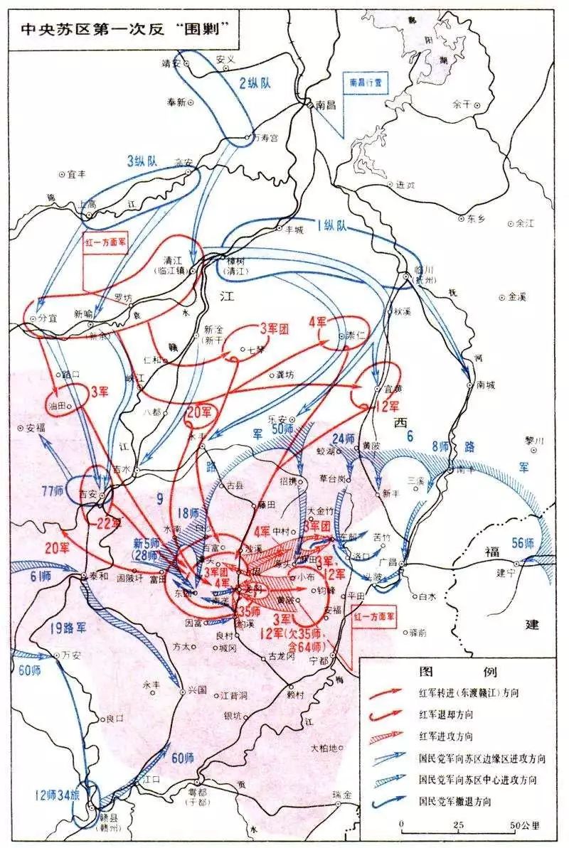中央苏区第一次反“围剿”示意图(图片来自网络)